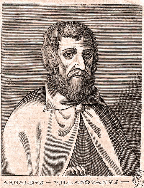 El influyente médico Arnaldus de Villa Nova (1240-1311 d. C.), que enseñó en la Universidad de Montpellier en el sur de Francia escribió el primer libro sobre vino jamás impreso. Arnaldus elogió el vino como remedio contra la melancolía (depresión) y destacó sus efectos beneficiosos sobre el tracto urinario, las venas y el hígado, algo irónico, dado que el consumo excesivo de alcohol es una causa de enfermedad hepática. También abogó por sus múltiples usos entre las personas mayores, incluida la reducción de la hinchazón de las hemorroides, ser beneficioso para la digestión y moderar el ritmo de desarrollo de las canas. También, promovió el vino como antiséptico, como, por ejemplo, como apósito para heridas.
