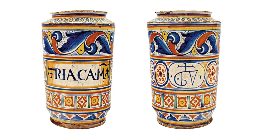 El vino formó la base de la famosa triaca, un brebaje heredado del antiguo rey del Ponto en las costas del Mar Negro en Turquía a principios del siglo I a.C. Esta misteriosa poción contenía docenas de ingredientes mezclados con vino y dejados fermentar durante más de un año. En 1348 se convirtió en un tratamiento especial para la espantosa peste negra, que estaba en su apogeo en toda Europa.