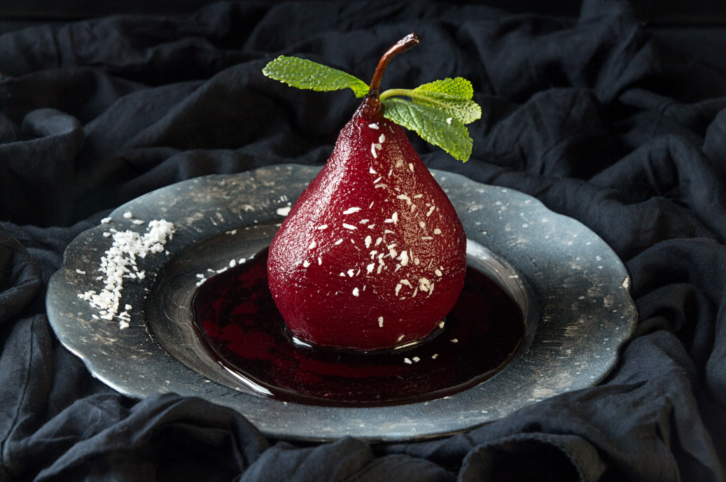 Esta deliciosa combinación de fruta y vino tinto crea un postre elegante y lleno de sabor que seguramente impresionará a