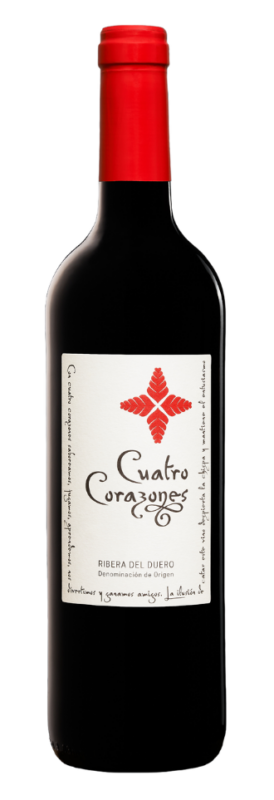 Sin embargo, podemos encontrar esta flexibilidad y delicadeza en muchos vinos tintos. Un ejemplo lo encontramos en el vino Cuatro Corazones de Ribera del Duero. Es un vino muy frutal con poco tanino (recordemos que un exceso de tanino podría chocar con el yodo que contienen los mariscos, volviéndose más amargos y secos). Producido a partir de viñas jóvenes en un terruño arcilloso-calcáreo, es una expresión de la variedad de uva Tempranillo. Notas de cerezas, moras, fresas y especias, un paladar sabroso, directo y ligeramente ahumado. Maridará perfectamente con platos de marisco sencillos y deliciosos, como el filete de bacalao con setas, cocido al horno.